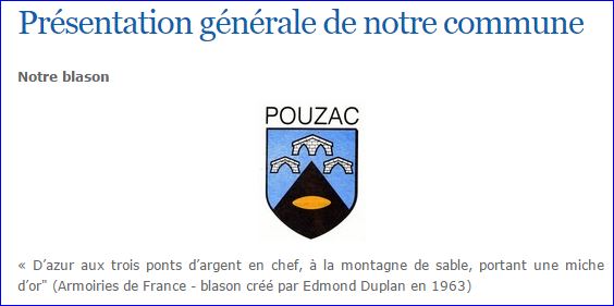 (1963) De sable à la miche d'or; mantelé cousu d'azur chargé de trois ponts alésés mal ordonnés d'argent maçonnés de sable, celui du chef à deux arches, les deux autres plus petits et à une arche.