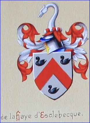 Armes de la famille De La Haye (ici, pour sa branche d'Esclebecq, ou Esclebecque).