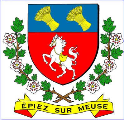 (2016) De gueules au cheval cabré d’argent bridé et sellé d’or; au chef cousu d’azur chargé de deux gerbes d’or posées en bande.