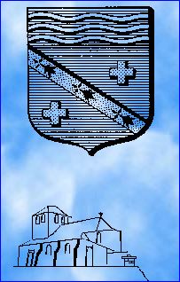 (1985) D'azur à la bande abaissée d'or chargée de trois mouchetures d'hermine de sable, accompagnée de deux croisettes d'or et surmontée d'une tierce ondée d'argent.