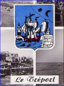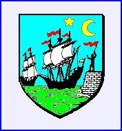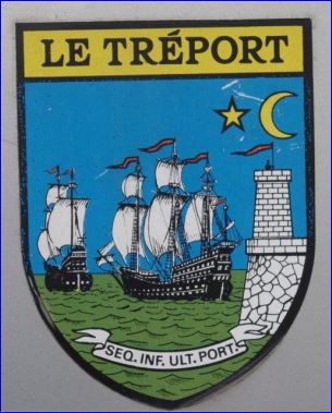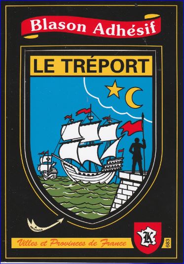 D'azur à deux navires de sable, équipés d'argent, pavillonnés de gueules, voguant sur une mer de sinople mouvant de la pointe, et quittant la jetée du port d'argent, maçonnée de sable, sur laquelle un guetteur de sable, tient haut un pavillon de gueules; le tout accompagné au canton senestre du chef d'un croissant contourné d'or adextré d'une étoile du même.