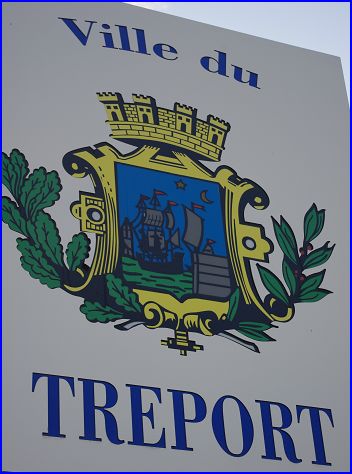 Picardie-Normandie: borne symbolique armoriée, limite régionale et départementale entre Le Tréport et Mers-les-Bains. Courrier Picard du 31 octobre 2020, détail d'une photo.(Aimablement transmis par Jacques Dulphy)