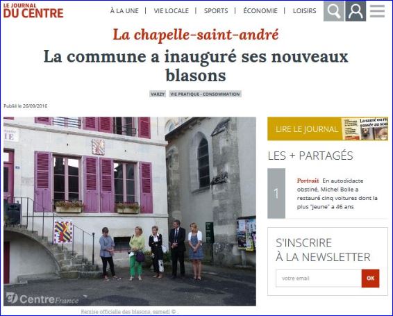 Article de presse Le Journal du Centre du 26 septembre 2016, (site du journal, 1/2).