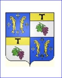 (1582) Écartelé: aux 1er et 4e d'azur à deux bars adossés d'or accompagné de quatre croisettes recroisetées au pied fiché du même; aux 2e et 3e d'argent à la grappe de raisin de pourpre feuillée et tigée de sinople, au chef d'or chargé d'un tau de sable.