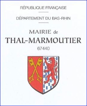 Parti: au 1er de gueules à deux clefs d'or passées en sautoir, au 2e d'argent semé de billettes d'azur au lion de gueules brochant.