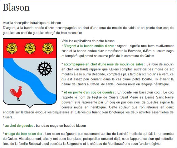Blason sur le site de la commune, 2016.