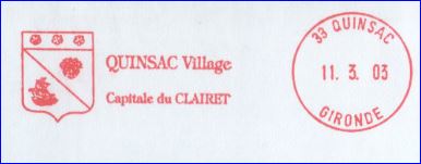 Tranché: au 1er de gueules au cep de vigne d'or, au 2e de sinople au voilier d'or sur des ondes du même; le tout sommé d'un chef d'or chargé de trois quintefeuilles de sinople.