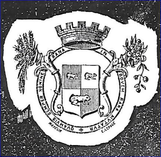 Écartelé de gueules et d'argent; à trois grenouilles contournées au naturel, celle de la pointe, plus grande, brochant sur les 3e et 4e quartiers