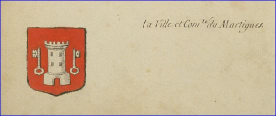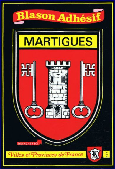 (1981) De gueules à la tour donjonnée d'argent, ouverte du champ, ajourée et maçonnée de sable, adextrée de la lettre capitale F d'argent et senestrée d'une clef du même, le tout posé sur un pont de trois arches d'argent, maçonné de sable, lui-même posé sur une mer d'argent.