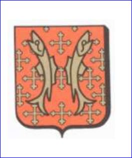 (1950) De gueules semé de croix recroisetées d'or à deux saumons adossés de même.