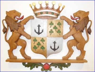 Écartelé: aux 1er et 4e d'argent à l'ancre de sable, aux 2e et 3e d'or à cinq trèfles de sinople ordonnés en sautoir.