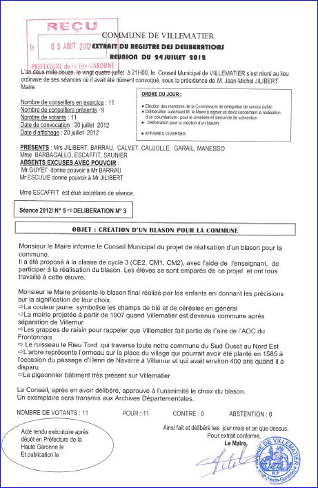 Extrait du Registre des Délibérations du 24 juillet 2012.