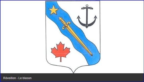 (2011) D'argent à la bande ondée d'azur chargée d'une épée basse d'or surmontée d'une étoile à plomb du même, accompagnée en chef d'une ancre de marine de sable et en pointe d'une feuille d'érable de gueules.