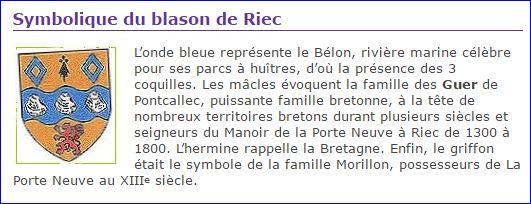 D'or à la fasce ondée d'azur chargée de trois coquilles d'huîtres d'argent, accompagnée en chef d'une moucheture d'hermine de sable accostée de deux mâcles d'azur et en pointe d'un griffon de gueules.
