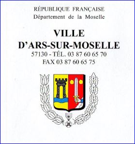 (1948) Parti: au 1er d'or à la tour crénelée de quatre pièces de sable, ouverte du champ sur toute sa hauteur, posée sur une fasce ondée d'azur, au 2e de gueules au dextrochère de carnation, vêtu d'azur, mouvant d'une nuée d'argent, tenant une épée du même garnie d'or et accostée de deux cailloux du même.