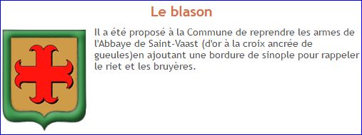 Ce sont les armes de l'abbaye Saint-Vaast d'Arras, seigneur du lieu, "brisées" d'une bordure de sinople qui évoque les "riez" (friches, en picard) qui constituaient au XIIIe siècle les limites de la seigneurie.