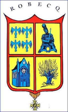 de gueules à la bande d'or accompagnée de six billettes du même ordonnées en orle". Ce sont ces armes que relève la commune de Robecq, mais aussi celle de