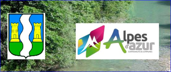 (1961) D'azur à la champagne de sinople soutenant deux tours d'or chacune sur un mont issant du même; au pal ondé d'argent brochant sur le tout.