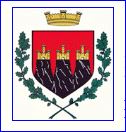 (1972) De gueules à trois châteaux à deux tours et un donjon d'or, ajourés et ouverts de sable, posés sur trois rochers de sable, rangés en fasce.
