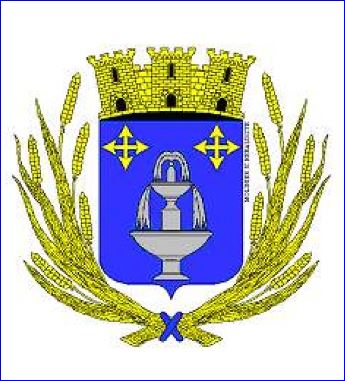 (1999) D'azur à la fontaine jaillissante d'argent, accompagnée en chef de deux croisettes fléchées d'or.