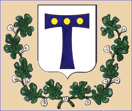 (1988) D'argent à un tau d'azur chargé sur sa branche transversale de trois besants d'or.