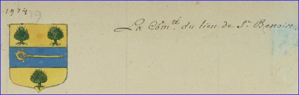 D'or à la fasce d'azur chargée d'une crosse d'or posée en fasce, accompagnée de trois joubarbes arrachées de sinople.