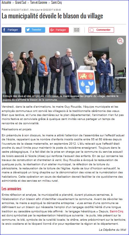 Article de presse La Dépêche du Midi du 3 février 2017, (site du journal).