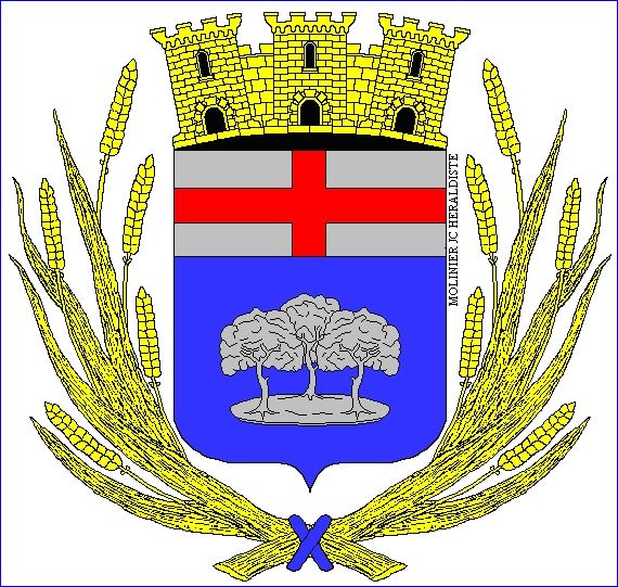 (1999) D'azur au bosquet de trois arbres sur une terrasse isolée, le tout d'argent; au chef d'argent à la croix de gueules.