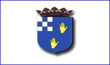 D'azur à deux mains dextres appaumées d'or et rangées en barre; au franc-quartier à cinq points d'argent équipollés à quatre d'azur.