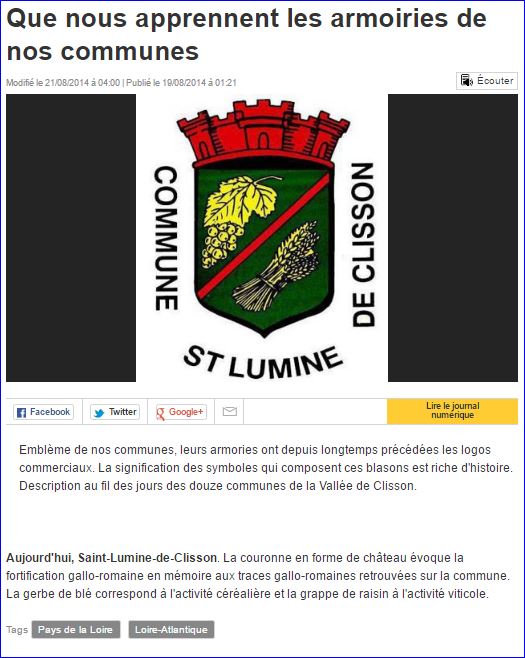 Article de presse Ouest France du 21 août 2014, (site du journal).