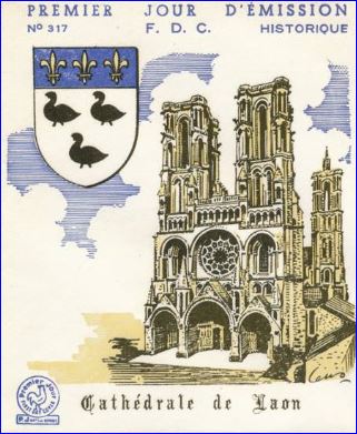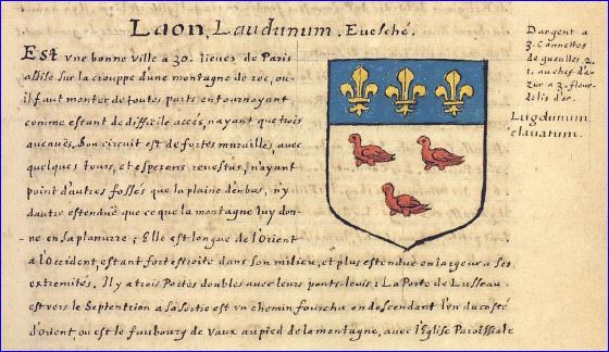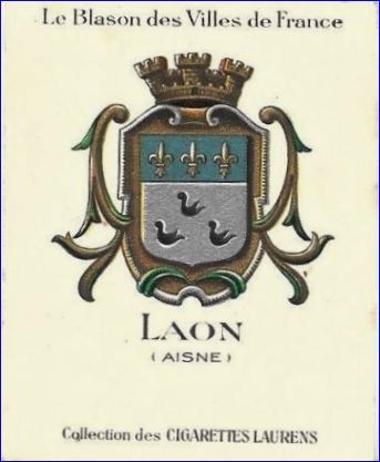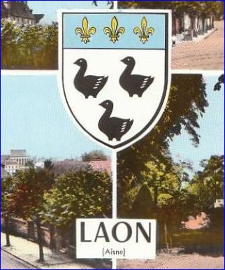 Lugdunum clavatum la ville de Laon cadenassée derrière ses murailles. Poste d’observation avancé du nord-est de l’Île de France, la ville à toujours appartenu au domaine royal. Les trois fleurs de lys du chef des armoiries sont le signe de sa fidélité et non une concession royale.