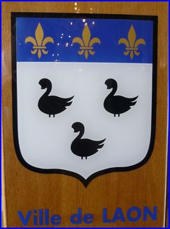 La date de 1112 paraît bien précoce pour des armoiries. Une autre hypothèse est plus intéressante. En 1360, le traité de Bretigny force le Royaume de France à verser une énorme rançon à l’Angleterre pour la libération du roi Jean II le Bon. La contribution de Laon est rapidement réunie grâce à deux magistrats, le prévôt de la cité, Jean de Lysaac, et un échevin, Jacques Marquette. Ils vont obtenir le droit de porter l’emblème de la ville sur leur blason. Pour se différencier, l’un supprima le bec et l’autre les pattes. La réunion des deux donna les armes de Laon.