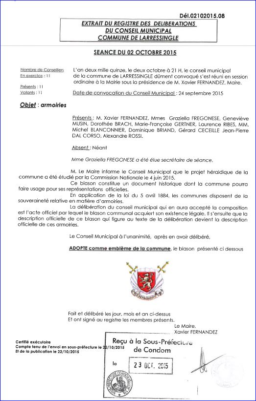 Extrait du registre des délibérations du 2 octobre 2015.