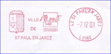 Parti: au 1er d'argent à la fasce ondée d'azur, accompagnée en chef d'une vierge d'or et en pointe de trois sapins de sinople, au 2e d'azur plain; au coq de sable brochant sur le tout en pointe.