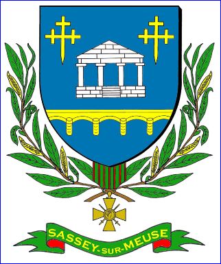 (2017) D'azur au temple d'argent accompagné en chef de deux croisettes recroisetées au pied fiché d'or et en pointe d'un pont à cinq arches du même.
