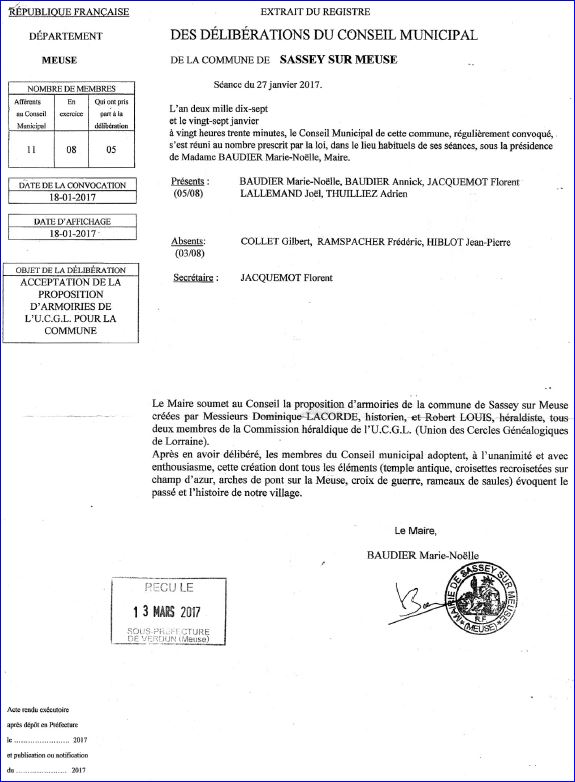 Extrait du Registre des Délibérations du 27 janvier 2017.
