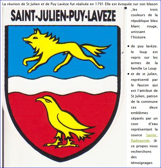 Coupé: au 1er d'azur au loup passant d'or, au 2e de gueules au faucon d'or; à la divise ondée d'argent brochant sur la partition.