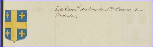 D'azur à la croix d'or cantonnée de quatre croisettes du même.