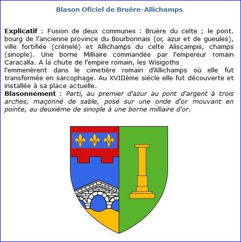 (2017) Parti : au 1er d'azur au pont d'une arche et deux demies d'argent, mouvant des flancs, maçonné de sable et posé sur une champagne ondée d'or, au chef cousu de gueules, bastillé de deux pièces et chargé d'une fasce alésée cousue d'azur surchargée de trois fleurs de lis d'or, au 2e de sinople à la colonne d'or.