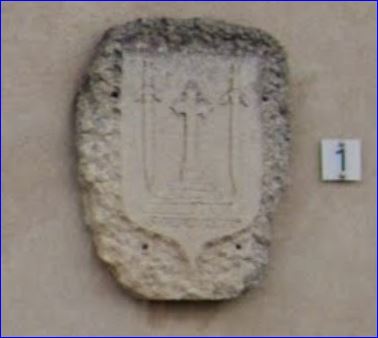 Blason sculpté sur la façade de la mairie, Google Street, 2021.