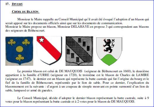 Par une délibération du Conseil Municipal du 22 juillet 2016, la commune de Béthencourt-sur-Mer a adopté un blason qui reprend sans modification le blason attribué en 2015 à cette commune par un site Internet de créations souvent fantaisistes: «