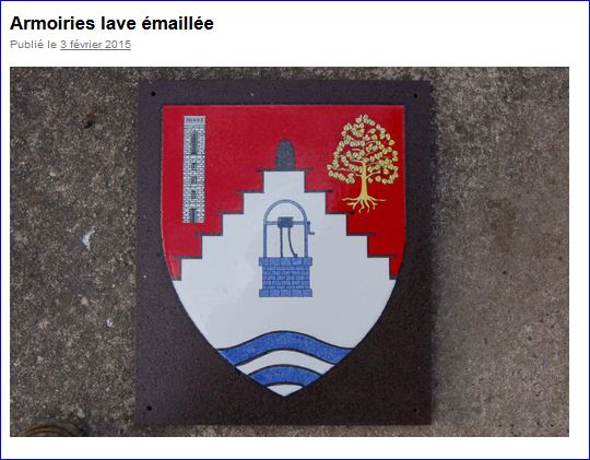 De gueules à la terrasse haussée, pignonnée à redents d'argent, sommée d'un caillou de sable et chargée d'un puits d'azur soutenu en pointe d'une rivière ondée d'azur et d'argent de quatre pièces, accompagnée en chef, à dextre du campanile du lieu d'argent, ouvert, ajouré et maçonné de sable et à senestre d'un tilleul d'or.