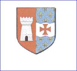 Parti: 1er de gueules à la tour d'argent, ouverte et maçonnée de sable, au 2e d'azur semé de fleurs de lis d'or à la fasce ondée d'argent chargée d'une croisette pattée de gueules.