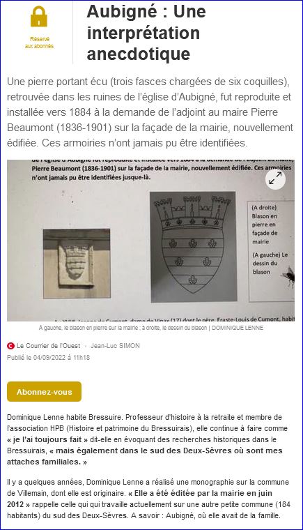 Article de presse Le Courrier de l'Ouest du 4 septembre 2022 (site du journal).