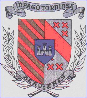(1966) Parti: au 1er coticé d'or et de gueules de douze pièces, au 2e d'argent à la bande de gueules, accompagnée de six flanchis du même ordonnés en orle; sur le tout, d'azur au château de trois tours d'argent, ouvert et ajouré du champ.