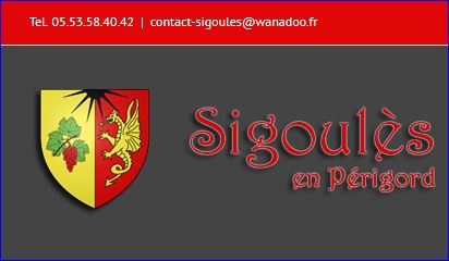 Parti: au 1er d'or à la grappe de raisin de gueules, feuillée et pamprée de sinople, au 2e de gueules au dragon d'or, à l'ombre de soleil à six rais de sable naissant du chef et brochant sur le tout.