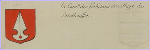 De gueules au soc de charrue d'argent posé en pal, la pointe en haut.