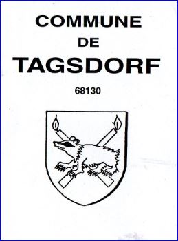 (1977) De gueules à deux cierges d'argent, allumés d'or, passés en sautoir, au blaireau du même brochant en coeur.