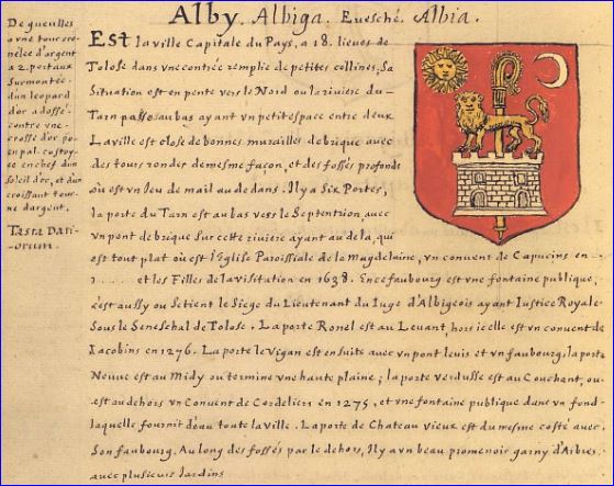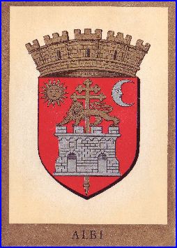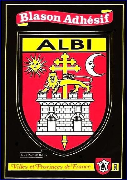 De gueules au château crénelé de quatre pièces d'argent, maçonné de sable, ouvert du champ de deux portes coulissées d'argent, sommé d'un léopard d'or, les pattes posées sur les quatre créneaux, le tout brochant sur une croix archiépiscopale d'or posée en pal, adextrée en chef d'un soleil du même et senestrée d'une lune en décours d'argent.