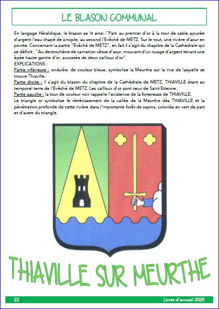 (1978) Parti: au 1er de sinople à la pointe d'or chargée d'une tour de sable ouverte et ajourée d'argent, au 2e de gueules au dextrochère de carnation vêtu d'azur issant d'un nuage d'argent tenant une épée de même garnie d'or, flanquée de deux cailloux d'or; à la rivière ondée d'azur brochant en pointe.